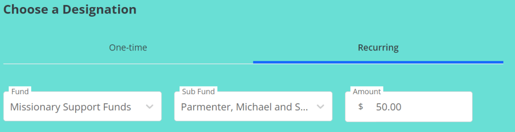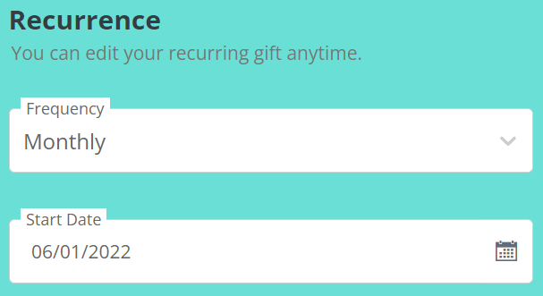 Frequency: Select how often you want to give the amount you entered above (weekly, monthly, etc).